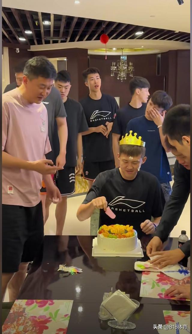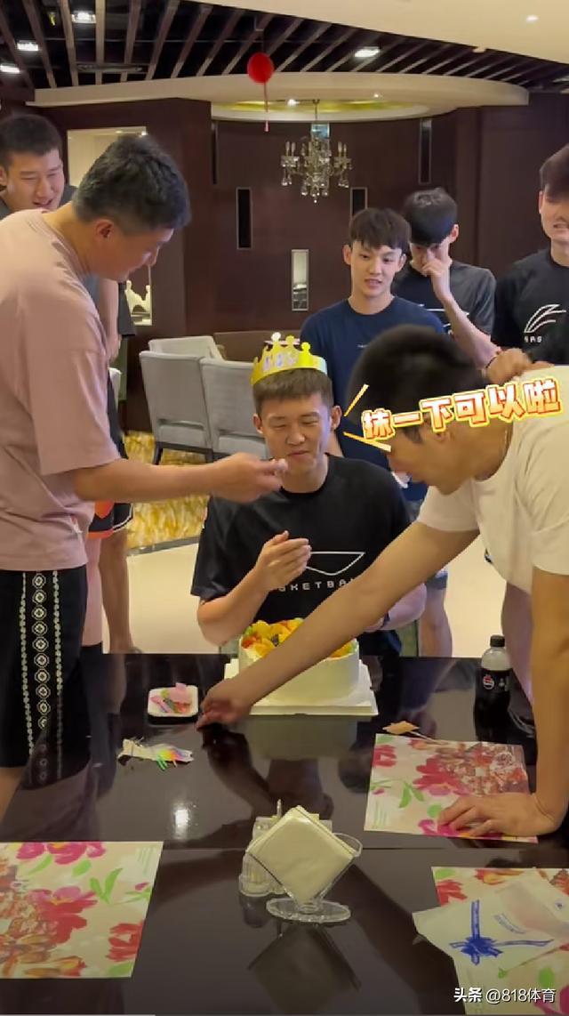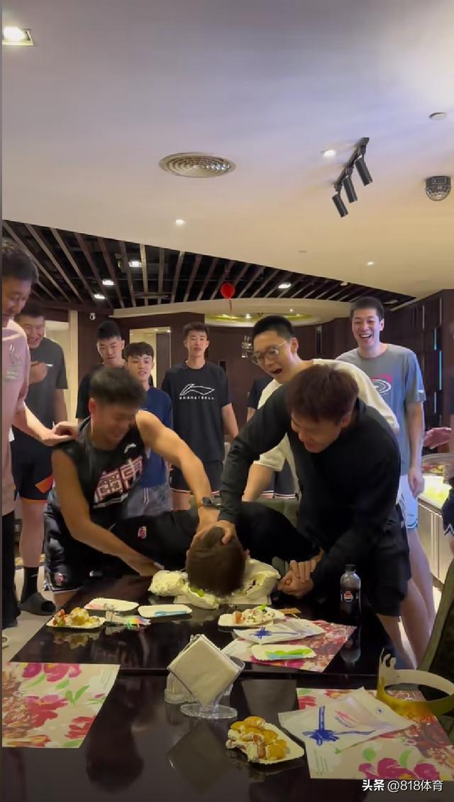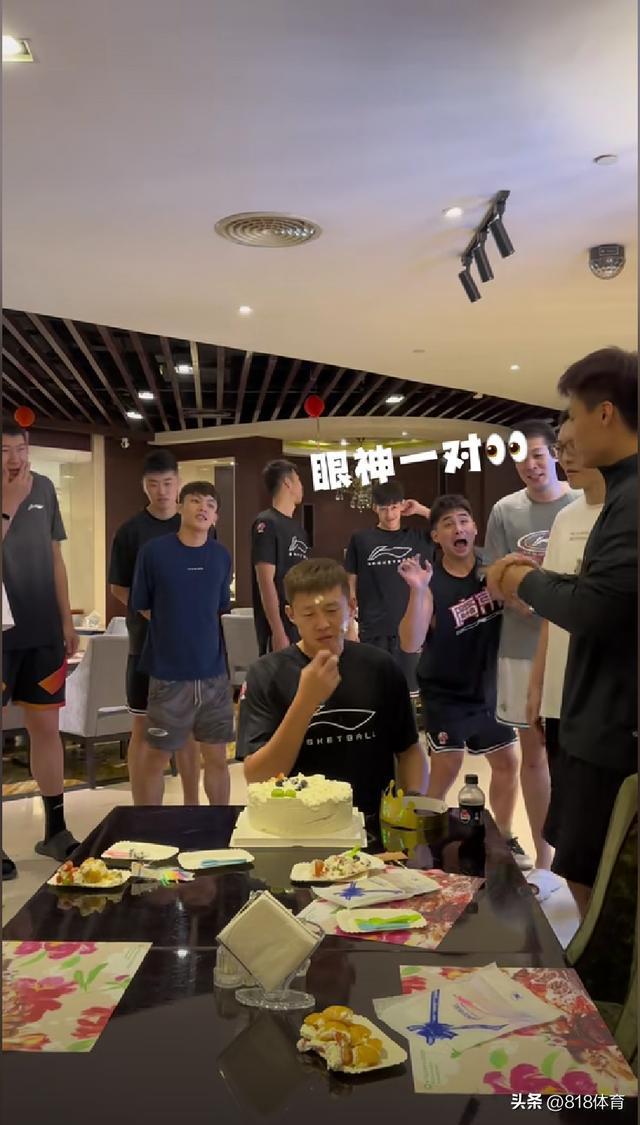 老六!杜锋率广东队为队长周鹏庆生,赵睿联手训练师拍蛋糕得意大笑