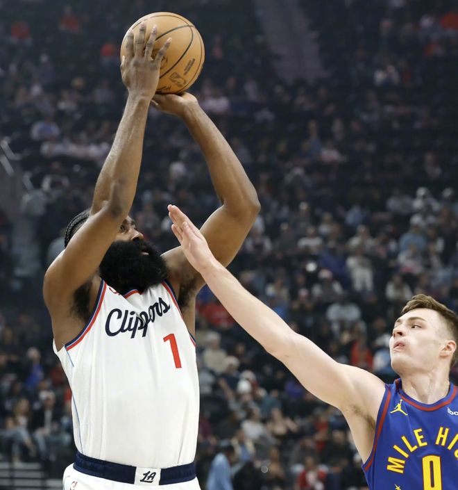 半场之后快船队61-59领先了掘金队只有2分,而这场比赛的看点究竟在哪?哈登再次秀出全新技能包不进攻模式,上半场打了18分钟,只出手3次只拿到了3分,但是有5篮板10助攻,哈登完全化身做饼大师了。
