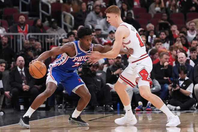 76人:恩比德20分6篮板2助攻3抢断4盖帽,马克西6记三分39分5篮板5助攻2盖帽,乌布雷18分,埃奇库姆12分11篮板4助攻,格莱姆斯10分。